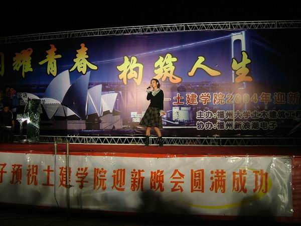 2004年10月30日晚19:00整,加拿大28预测 团委学生会在新校区二期食堂举行“闪耀青春,构筑人生”2004年土木建筑工程学院迎新晚会,校学生处、校团委领导、加拿大28预测 领导与部分教师,加拿大28预测 03级04级与兄弟学院近一千名同学观看了晚会演出。此次晚会受到福州新浪潮电子公司的友情赞助,该公司提供了许多精美的礼品与纪念品,晚会秩序良好,气氛热烈。