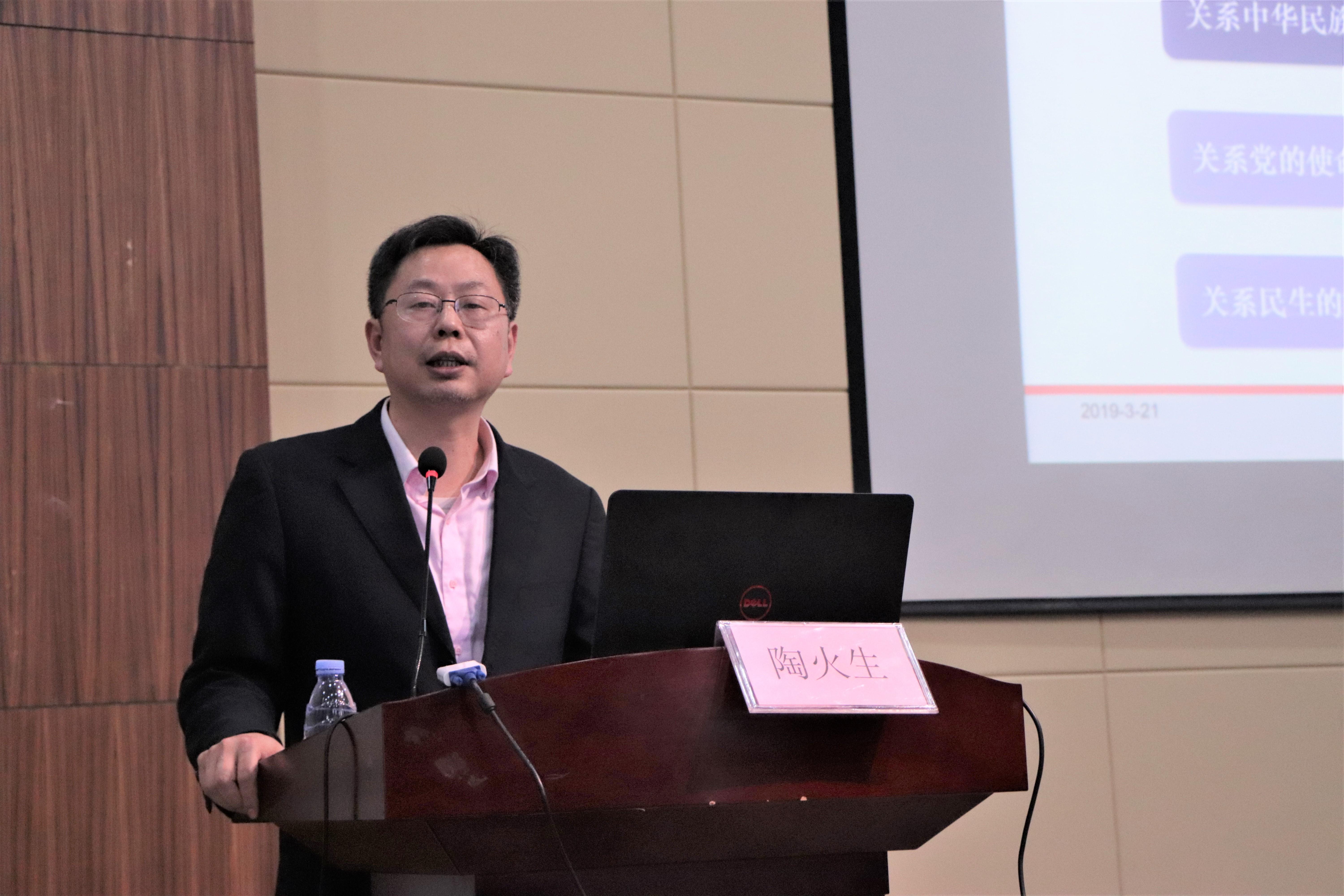 第七期“青马班”邀请马克思主义学院陶火生教授做客青马班讲堂,学院党委副书记余飞老师、团委书记许长宾老师以及第七期“青马班”学员、发展对象、入党积极分子等近200人聆听了讲座。