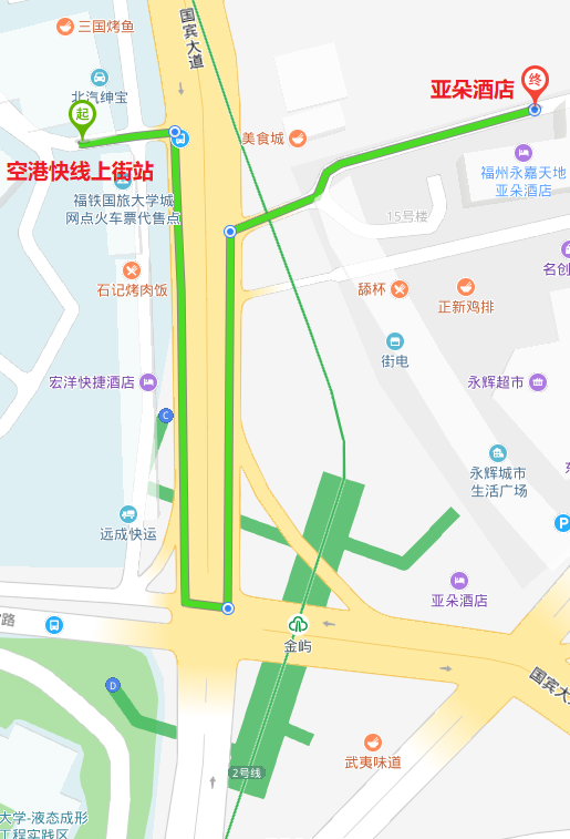 ②空港快线大学城线(长乐国际机场站→空港快线上街站),时间约75分钟。