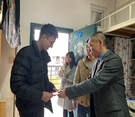 余飞副书记及各年级辅导员走访外籍学生宿舍并为其送上“新年红包”