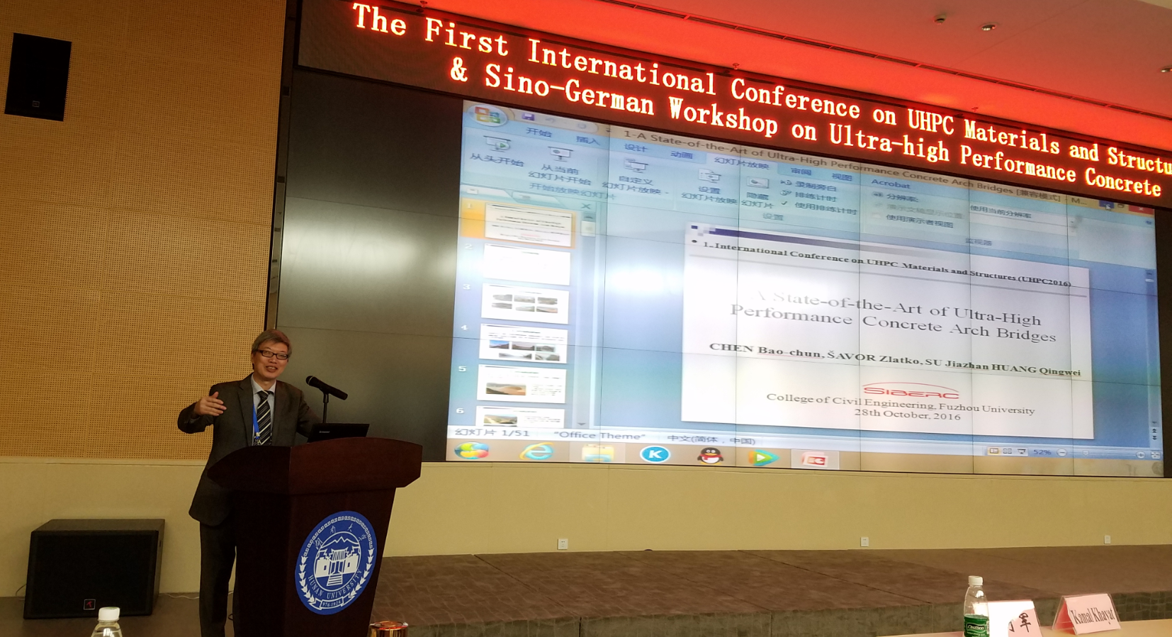 院长Bruno Briseghella、陈宝春教授、季韬教授等多名师生参加大会。陈宝春教授做了题为“A State-of-the-Art of Ultra-High Performance Concrete Arch Bridges”的大会邀请报告,并主持了第二单元的全体大会。